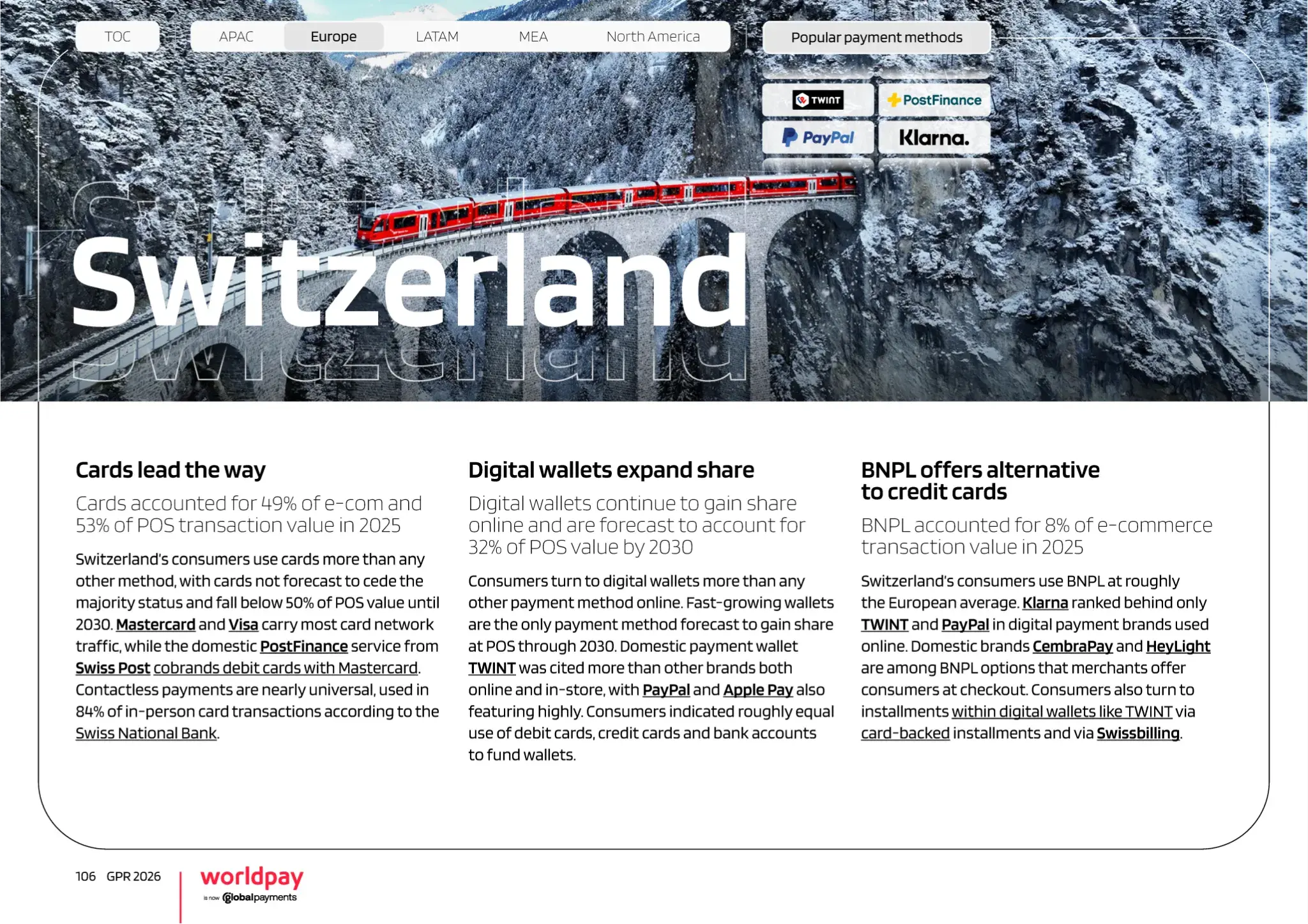 This report is copyrighted material of Worldpay, LLC. The report cannot be shared or forwarded in its entirety without written consent from Worldpay. The report may be cited, as long as it is attributed to “Global Payments Report 2026.”