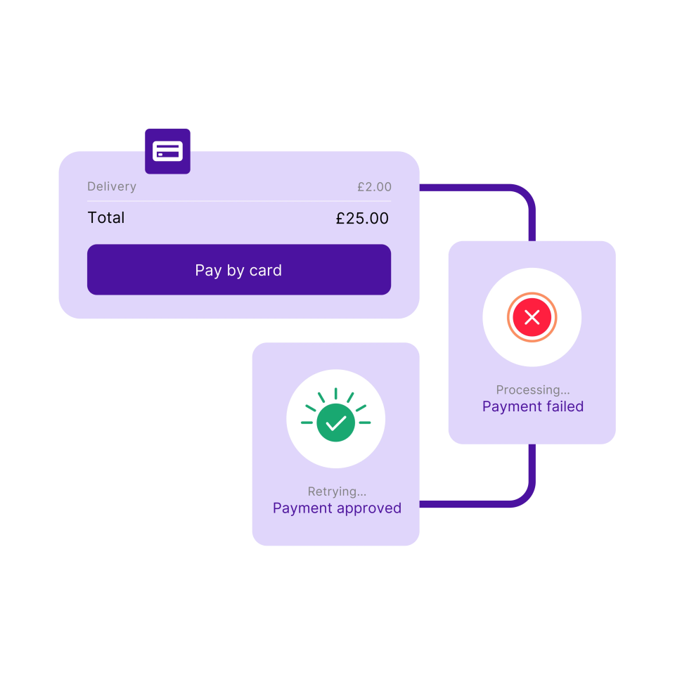 Optimize every transaction and recover failed payments with AI-powered retries. Reduce declines by updating credentials and enhancing authentication so good transactions go through.